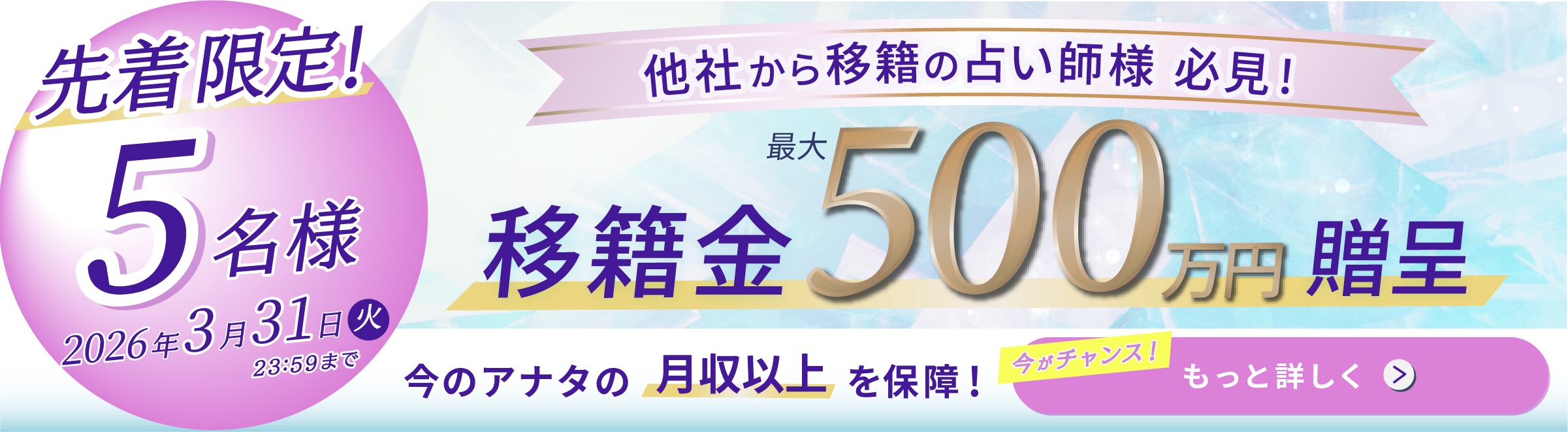 移籍前は「報酬が下がらないか」「業務負担が増えないか」と不安でした。CSEさんから大手の電話占い会社をご紹介いただいたおかげで、移籍に成功しました。報酬は好条件に加えて移籍金もGETし、集客は安定的、好待遇で迎えていただきました。移籍して本当に良かったと思います!