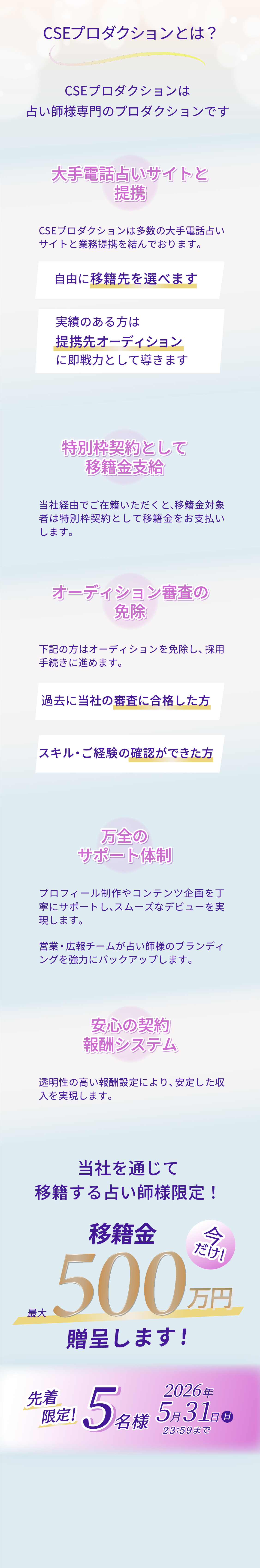 お名前(本名) : ふりがな(本名) : 性別 : 生年月日 : メールアドレス : 携帯電話 / 自宅番号 : (※どちらか一方必須) 現在所属しているサイト名(複数可) : 過去に在籍していたサイト名(複数可) : 使用できる占術 : 対応可能な相談内容 : 活動歴詳細・自己PR :
