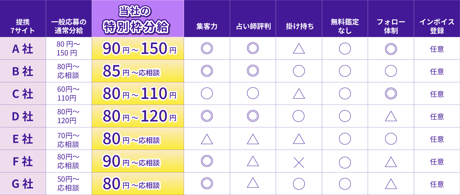 提携7社の比較一覧